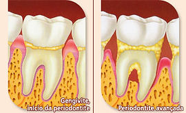 É uma infeção, causada por bactérias, que afeta os tecidos que rodeiam os dentes; carateriza-se pela formação de um espaço indesejável entre a gengiva e o dente, chamado de bolsa periodontal, a qual favorece o acúmulo de resíduos alimentares e bactérias. A doença periodontal é a principal causadora da perda de dentes em adultos.